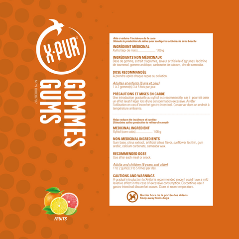 X-PUR Gums & Pastilles contain 100% medicinal grade xylitol to stimulate saliva production and fight dental cavities. X-PUR’s high quality medicinal grade xylitol is the only one recognized by Health Canada to stimulate saliva. It has been scientifically proven to hydrate the mouth by increasing the production of saliva.