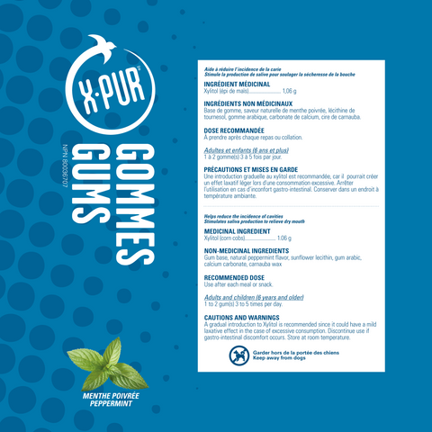 X-PUR Gums & Pastilles contain 100% medicinal grade xylitol to stimulate saliva production and fight dental cavities. X-PUR’s high quality medicinal grade xylitol is the only one recognized by Health Canada to stimulate saliva. It has been scientifically proven to hydrate the mouth by increasing the production of saliva.