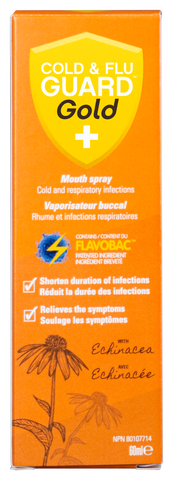 As a mouth spray containing Echinacea, Cold & Flu Guard™ Gold coats the surface of the mucosa of the mouth and throat.