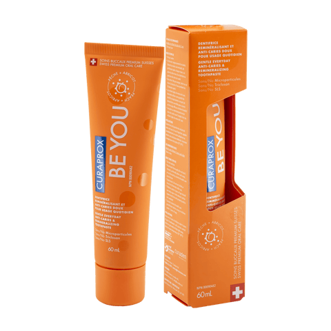 “Be you” protects the enamel with RDA 50. Hydroxyapatite closes openings that expose dentine and relieves the pain of sensitive teeth. Glucose oxidase encourages the flow of saliva with natural enzymes and strengthens your mouth’s natural defences. No SLS means no dry mouth and fewer ulcers.